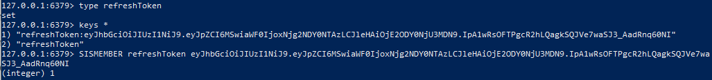 로그인 http request 를 보낸 뒤에 정상적으로 redis 에 저장이 되었는지 redis-cli 에서 확인해 볼까요?