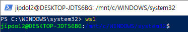 정상적으로 wsl 이 설치되었고 version 도 2로 변경되었으면 powershell 에서 wsl 이라고 입력하면 익숙하게 보시는 리눅스 환경의 cli 를 보실 수 있으실 겁니다.