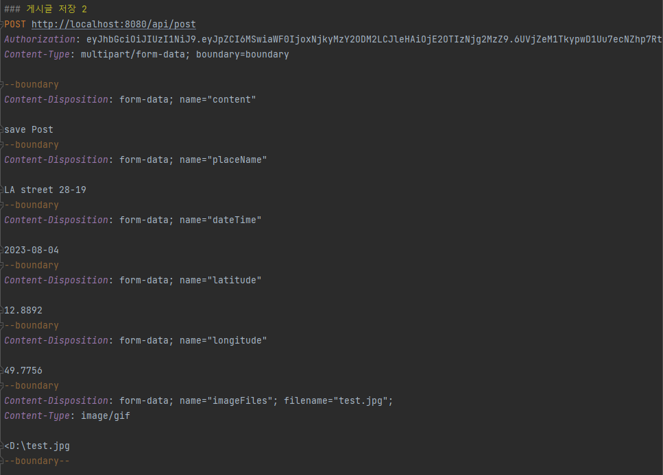 이제 문제의 .http 파일을 이용하여 MultipartFile 을 요청보내보도록 해봅시다.