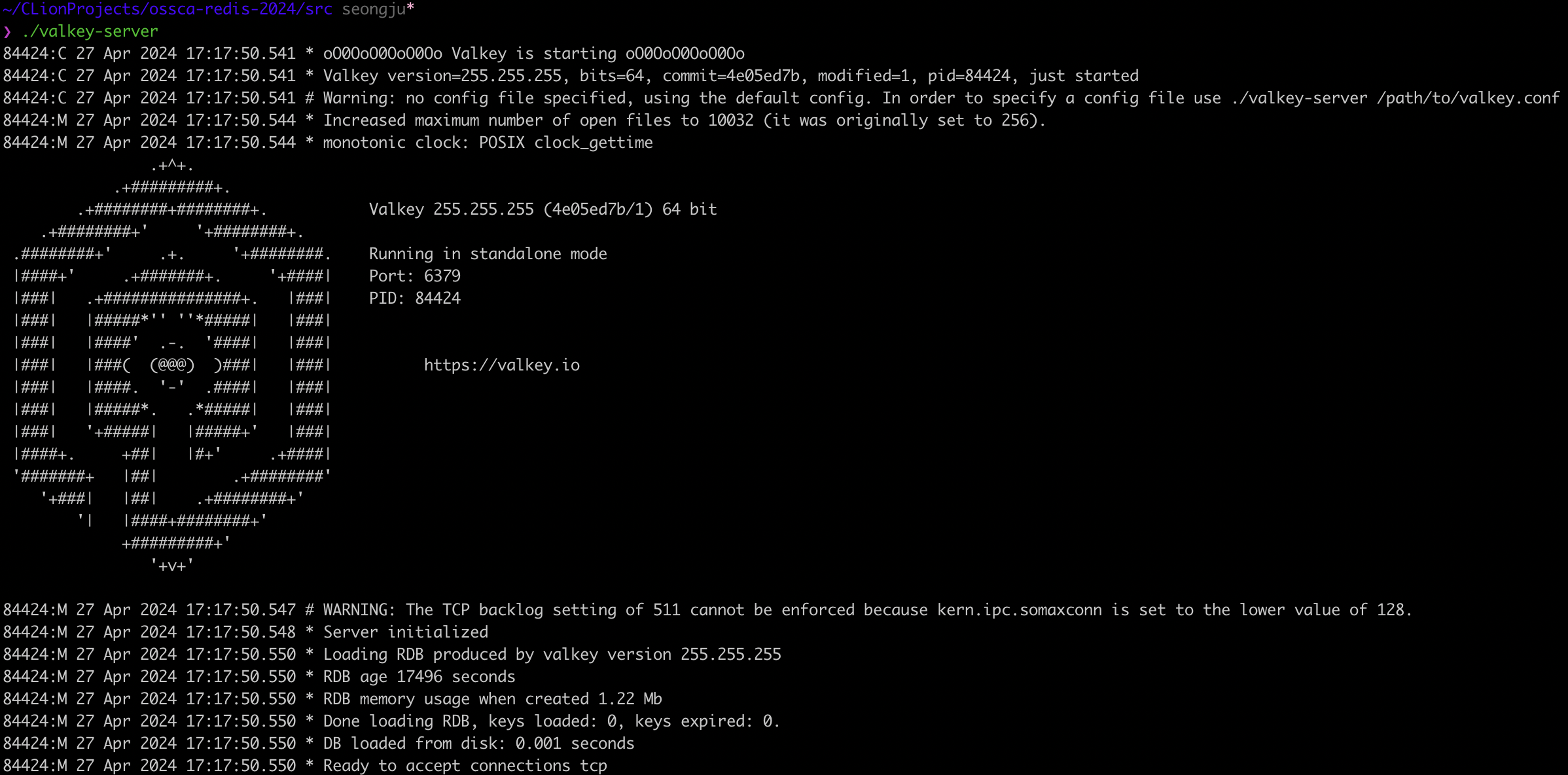 아래 명령어로 valkey(redis) 를 실행시켜줍니다.