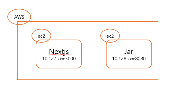 각기 다른 ec2 에 nextjs / jar 파일들이 위치해 있고 실행 되고 있습니다.