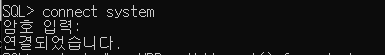 먼저 'sql 명령줄 실행'을 실행시켜 봅시다. 그리고 아래 "connect system"의 명령어를 입력해주세요.